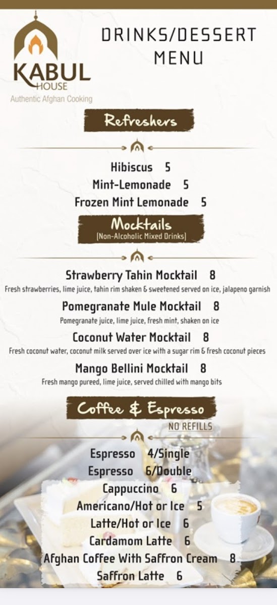 Rich Afghan coffee topped with a layer of saffron-infused cream.